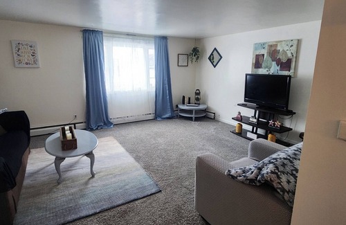 2 large bedrooms each with closets and dressers for clothing storage. Master bedroom has designated work space with wifi ,flat screen TV wall mounted. 42"flat screen TV for watching your favorite shows or a movies in living room. Located within walking distance of area shopping and restaurants. Private deck out the kitchen door with table and chairs. Updated bathroom with linen closet tub and shower. Private parking in the driveway, there is ramp access if needed off of the driveway as well. There are toys in the bedroom closet for kids to play with. Books in the living room for reading enthusiasts and board games for family time. We try to make the space feel like home. Updated kitchen appliances and quiet safe neighborhood is awaiting your stay. So much to offer and central to all surrounding areas, local hospitals for the traveling professional. Minutes down the road to Binghamton University and highway travel time around 15 min to Broome Community College. Many parks and local attraction make this a great choice for your stay. This is a second floor with a set of carpeted stairs there is a handrail and lighting in the hallway. Newly installed local pool nearby minutes from the house with a splash pad for the kiddos. Great place to take the kids. If using the private deck please Put Down Umbrella when not in use to avoid damage if a storm comes through the area. thank you.