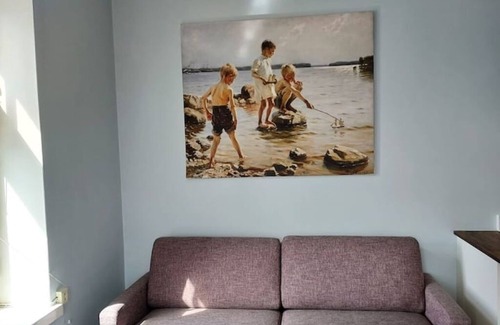 This studio apartment accommodates up to 4 people. You can choose whether to sleep on a plush loft mattress or a high-quality sofa bed. The kitchen is equipped with a stove, oven, dishwasher, refrigerator with freezer compartment, microwave and coffee maker.