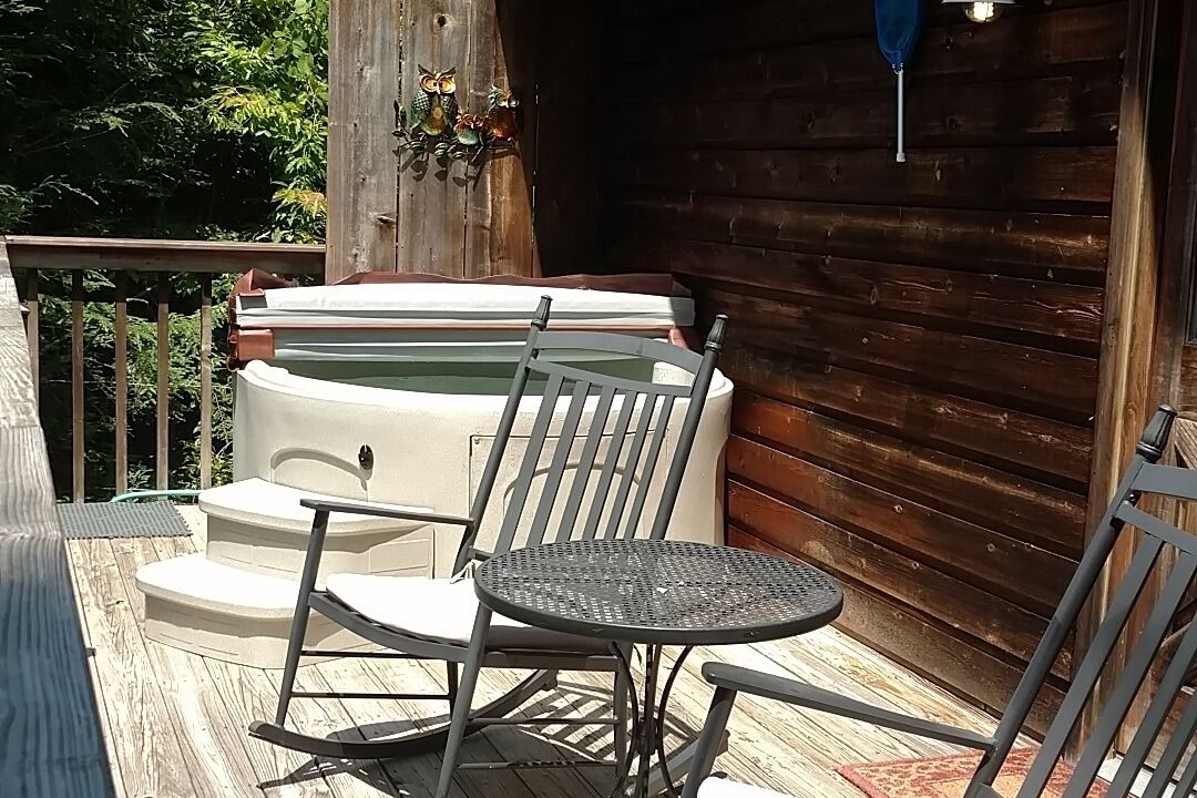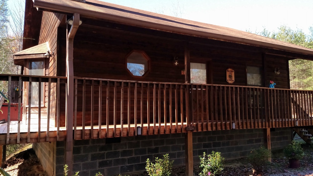 Location, Location, Location! Just minutes from downtown Gatlinburg and in the heart of the Arts and Crafts Community. Easy travel with minimal traffic, to and from Pigeon Forge using Stoplight 1, via the National Park. It's a close and easy drive to all area attractions and restaurants, yet tucked away in a nice, quiet private setting. The comfortable sofa is perfect for stretching out in front of the fireplace and watching TV, or reading a good book. It also pulls out to a queen size sleeper with a brand new comfortable mattress. Or you can choose to enjoy a good game of pool. The bedroom is outfitted with real log furniture and a comfortable king sized bed. Also with a spacious bathroom with a private two-person jacuzzi tub. The fully stocked kitchen allows you the option of having a romantic meal at home, where you can also enjoy the warmth of the gas-log fireplace. Plenty of space between neighbors allows for privacy when relaxing in the brand new outdoor hot tub and enjoying the mountain view. Spacious, level yard for outdoor games. Easy access to all attractions, but still private and tucked in the mountains. Level parking area with easy street access. This cabin provides a perfect, peaceful, and stress-free getaway.