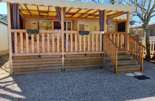 Caravan "Mobil-home Camping" with Mountain View, Shared Heated Pool & Wi-Fi | RV Rental in Saint-Julien-en-Saint-Alban