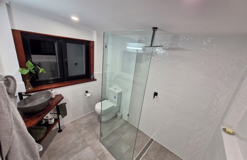 Ideal for couples or solo travelers looking for a safe haven, our retreat features a deluxe queen bed and an ensuite with a walk-in shower showcasing stunning vistas. Enjoy a fully equipped kitchen where you can whip up your favorite meals, then unwind with a vinyl record playing as you soak in the endless valley views over the treetops.