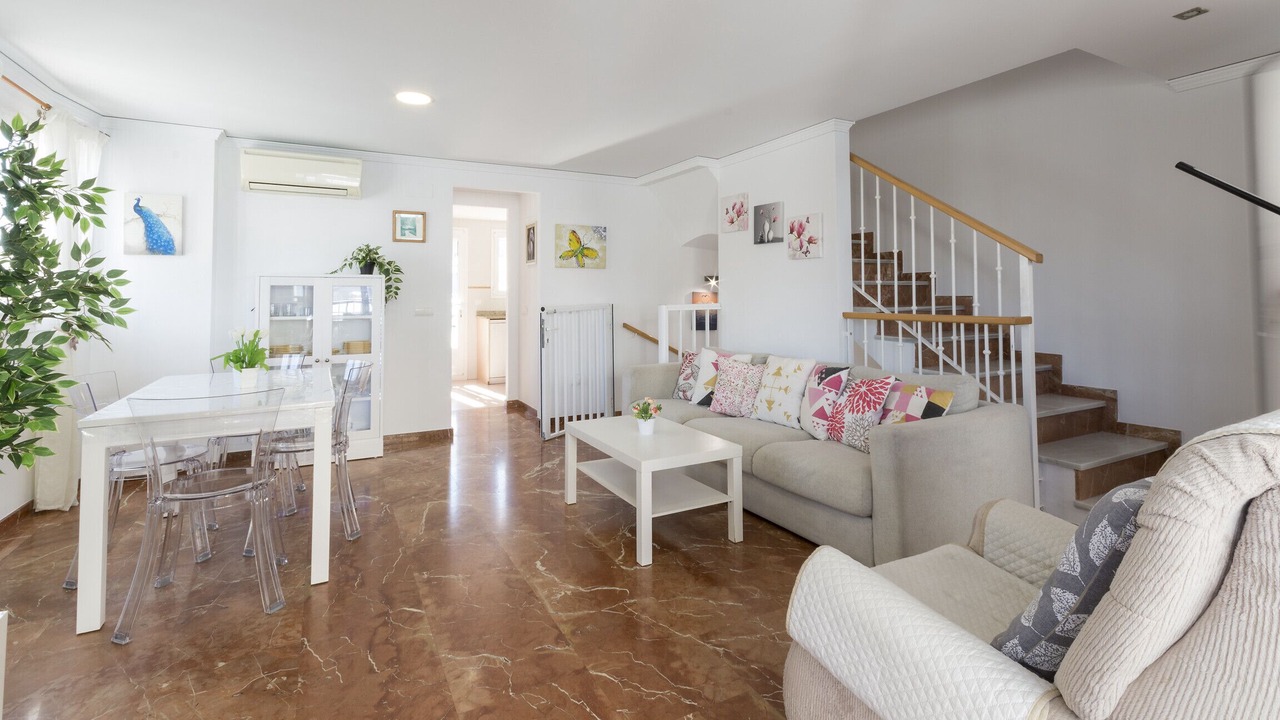 This beautiful terraced house only 550 metres away from the beach in Gandía and with shared pool welcomes 5 - 7 guests.