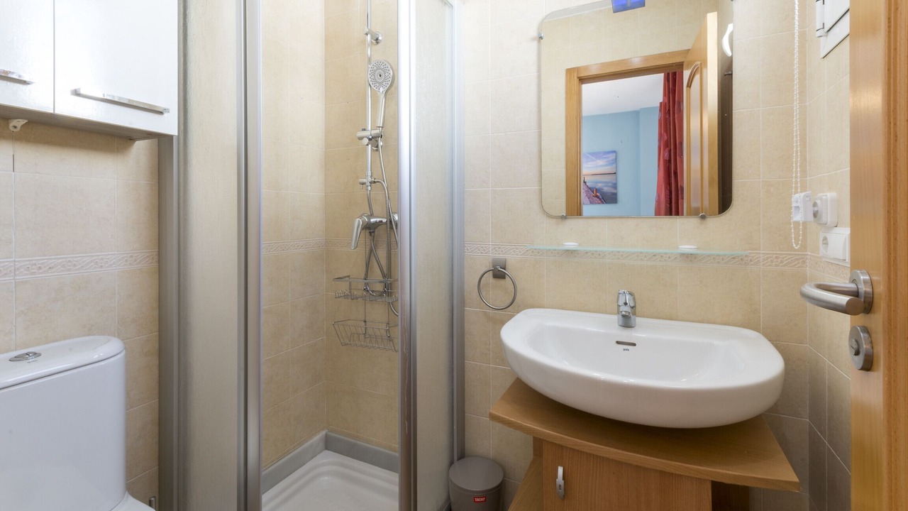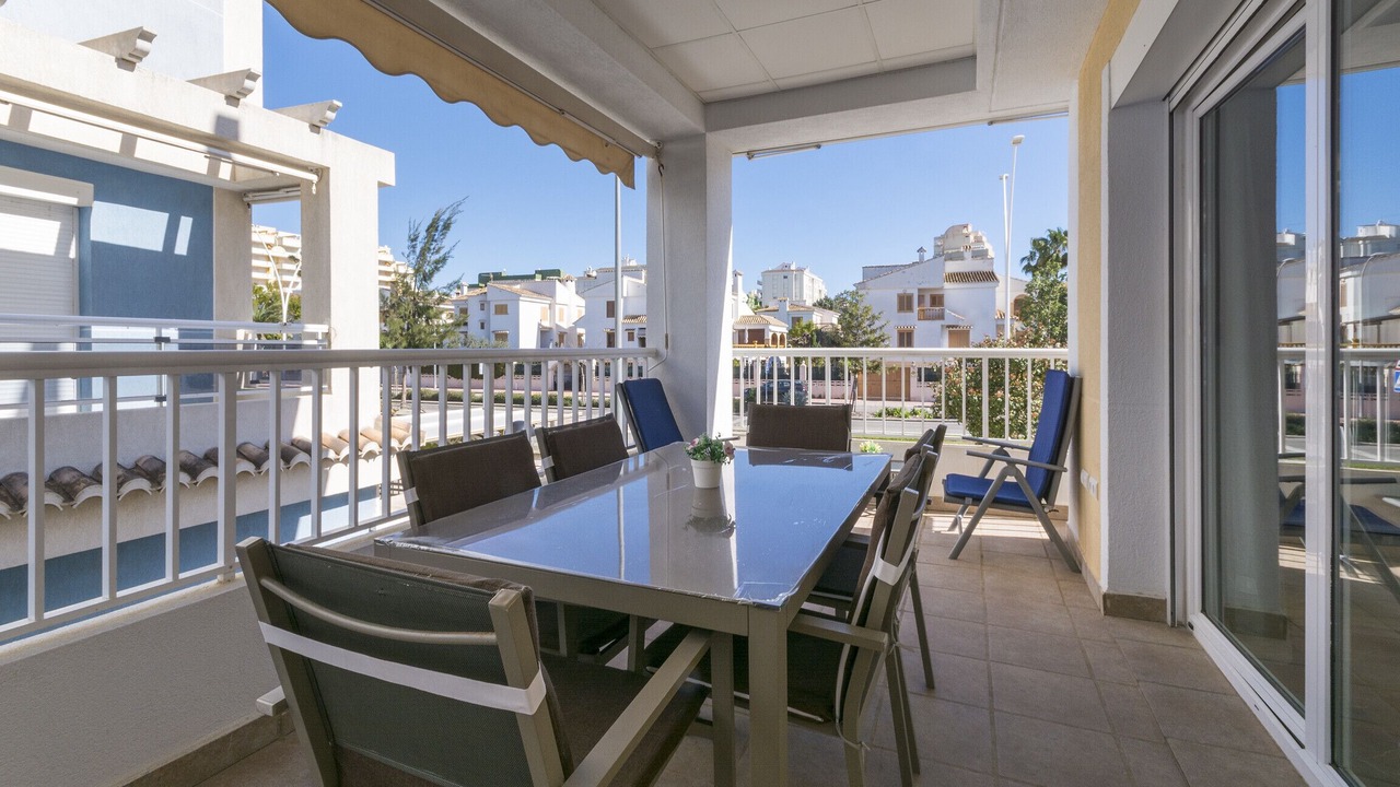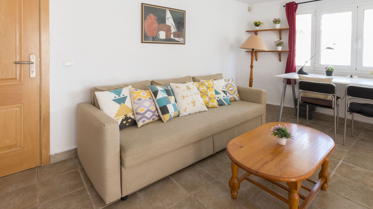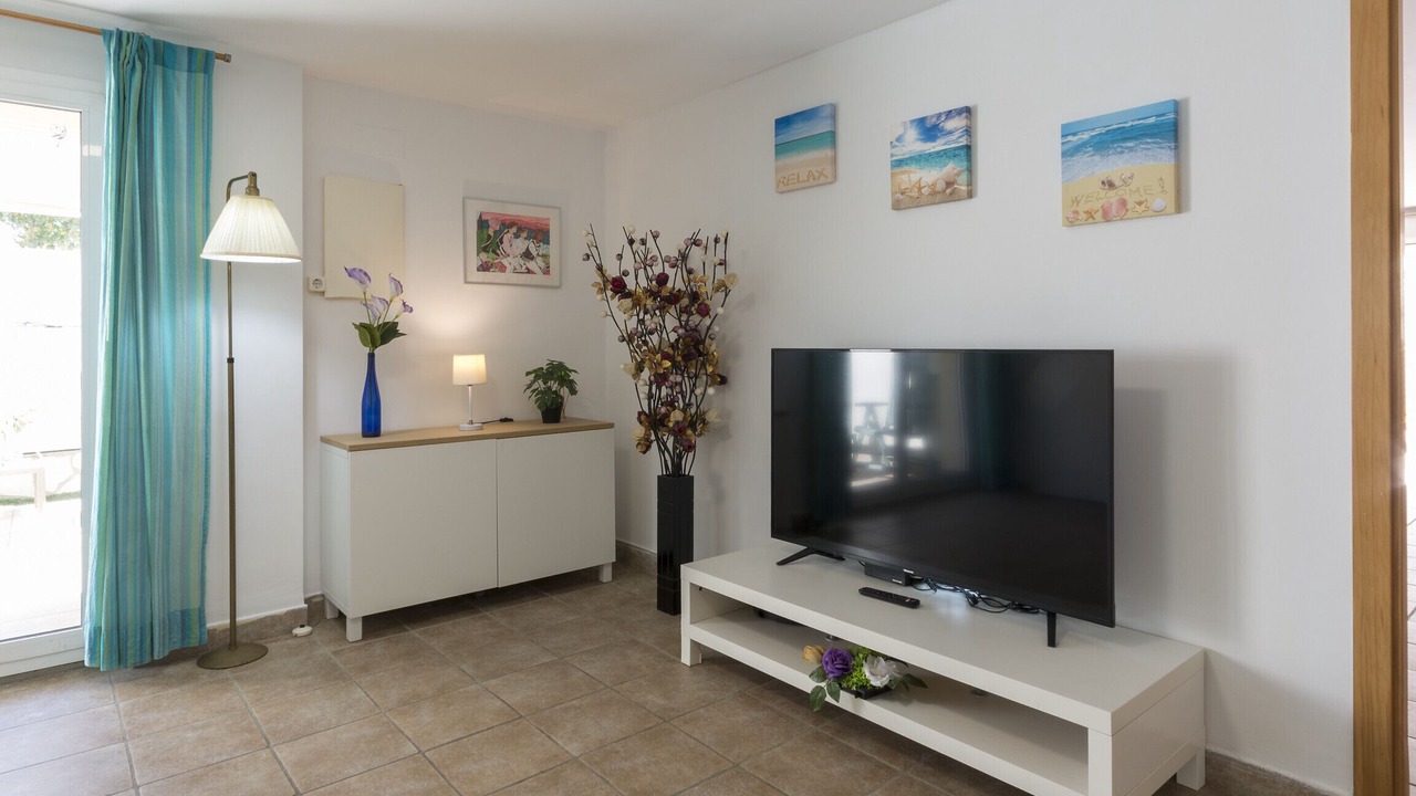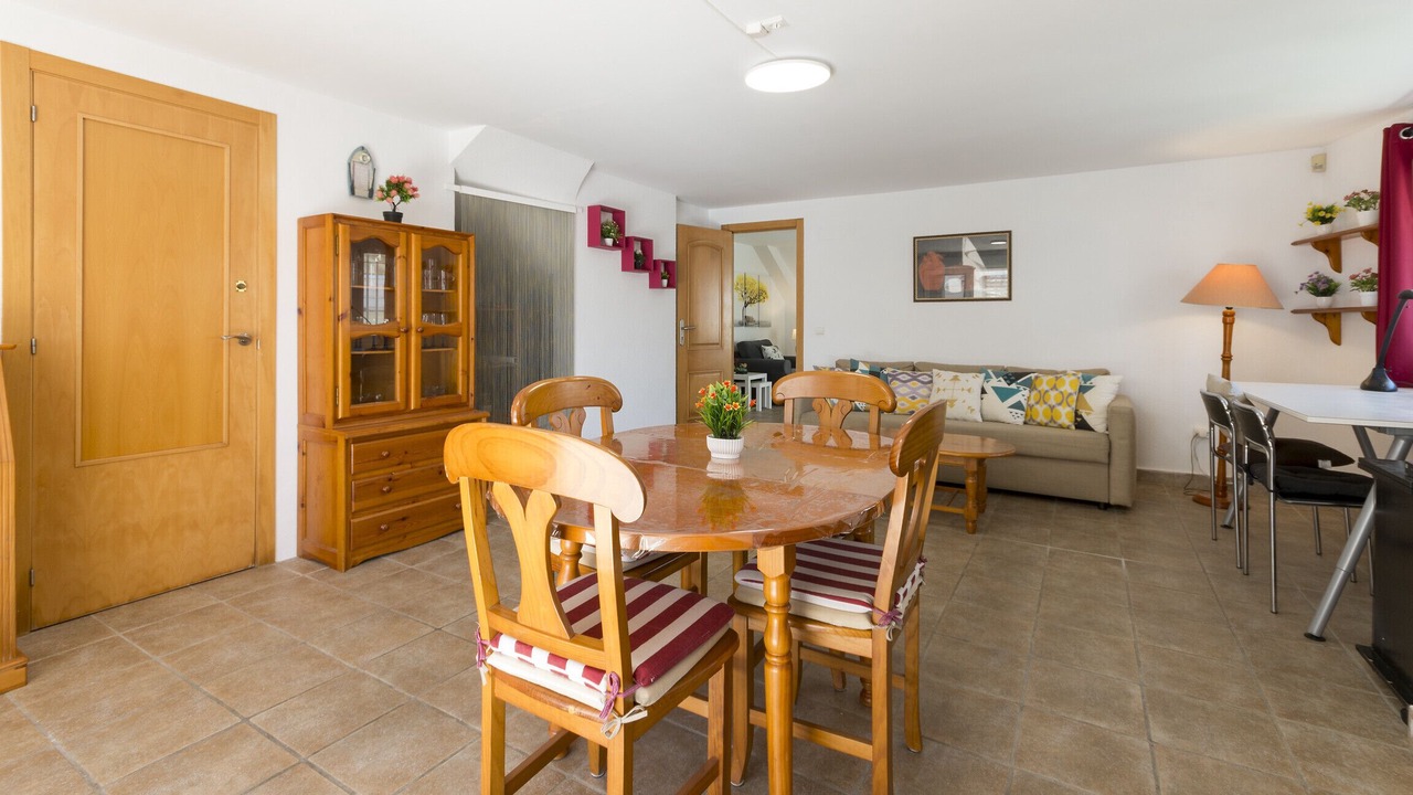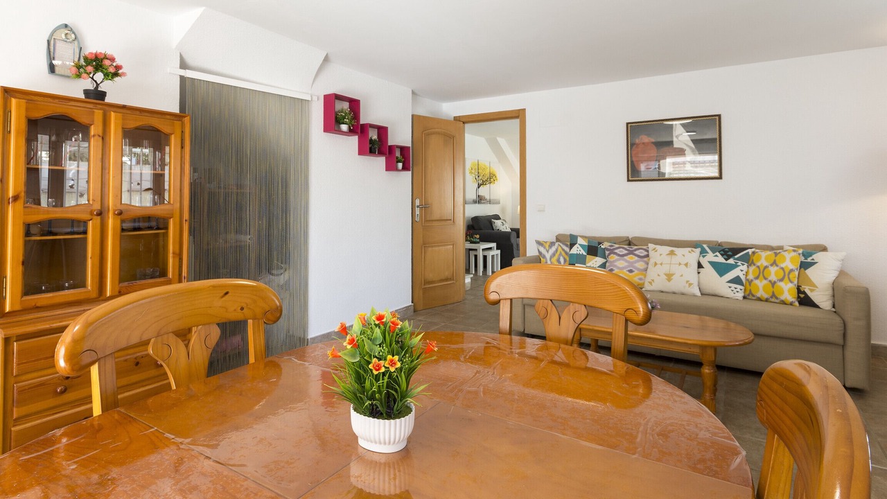 This residential of terraced houses share a beautiful community pool which will be your meeting point after a long beach day. You can wash the salt and the sand off at the helpful exterior showers and then, lets swim!!. The chlorine pool sizes 8 x 5 metres while the depth goes from 1.2 to 1.8 metres. It also features a children pool sizing 6 m2 and 0.5 metres water depth. Then, after cooling down, the little ones can play a bit in the shared garden area while you sit on the benches enjoying the trees shadow. The house also offers comfortable exterior areas to enjoy the good weather in privacy. You can enjoy a succulent breakfast at the terrace of the main floor or a delicious barbecue in the evening.