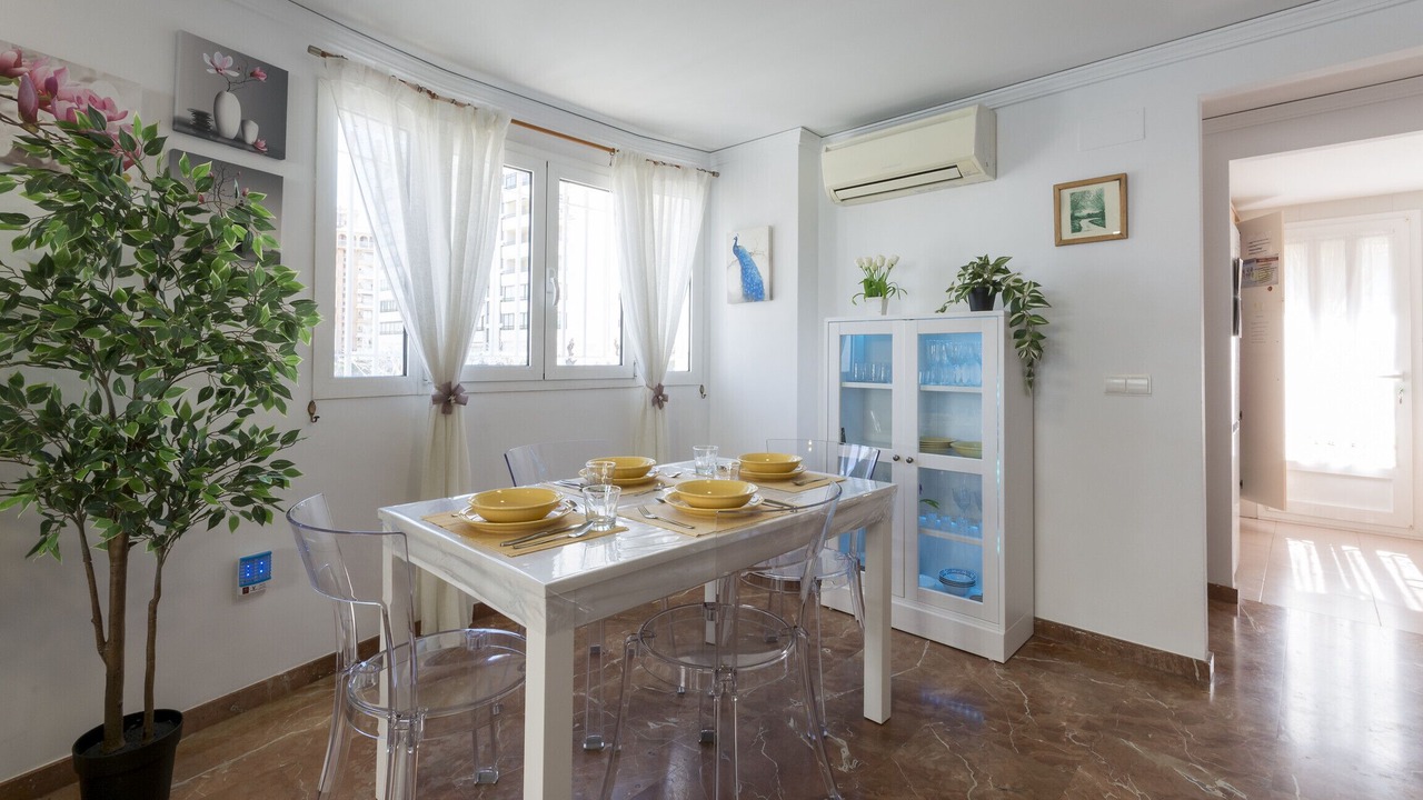 The terraced house is only 550 metres away from the amazing beach in Gandía, of fine and golden sand and shallow waters, so the perfect place to enjoy the sea and the beach. The area offers all services needed for an independent stay: supermarkets, bars, restaurants,... You can have long walks through the promenade in the evening, practice water sports, and taste the great gastronomy of this Mediterranean corner.