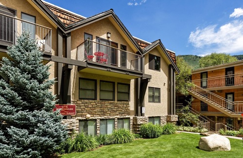 Sunny top floor 2-bedroom 2-bath deluxe condo with amazing views of Aspen Mountain. The private balcony hosts the same views. It is a two block walk to all that Aspen offers and 4 blocks to the Gondola. Although you don't really need it, there is a dedicated parking spot.
