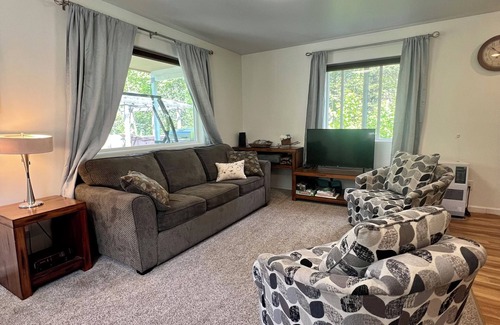 A charming one-bedroom cottage nestled on Lazy Mountain in Palmer, AK. This home is situated in a quiet, secluded quiet neighborhood featuring a fully equipped kitchen, a cozy living room with picture windows, a comfortable bedroom, and a serene outdoor patio.