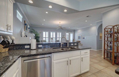 The kitchen is equipped with stainless appliances and all utensils to prepare and serve your meals including a blender, crock pot, Keurig coffee maker, regular drip coffee pot and electric wine opener. The dining table seats 8 plus a breakfast bar for 4 additional seating.