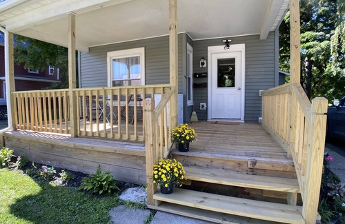 Located in the heart of Pulaski, steps to the Salmon River; the staircase, black hole, and town pool are across the bridge a 1/4 mile away! Walkable to the village's amenities including main street, restaurants, bars, and shopping. 30 minutes to Syracuse, Oswego, or Watertown. A bright, clean, quiet space in the midst of it all. Relax in this family-friendly home away from home while you work or play.