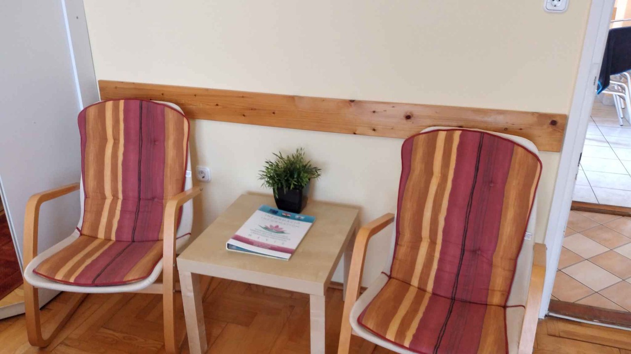The studio is located in an apartment house built in 1995, was renovated in 2018 and is furnished in a modern and functional style. The property is located in the town centre. Also due to the view over the mountains from the property and its quiet and secluded location the domicile is popular. Available for use: pavilion and courtyard.LocationHévíz. The landlord does not live in the house or on the property. Specialair conditioning, central heating, electric heating.Facilities: internet access (WLAN) and safe. TV reception takes place via electric wire.For your safety, the accommodation is equipped with smoke detector. Dogsnot allowed. DistancesShopping 500 m, restaurant 300 m, town center 500 m. thermal bath in Heviz 1300 m. DivisionStudio, 1 floor, 1 room, 25 sqm, in total 2 beds. RoomThe entrance to your studio is located on the lower floor and leads over 1 step, an internal staircase and an external staircase directly into the living room. Living/bedroom with 1 double bed, TV, dining area (2 seats) and access to the balcony (20 sqm, covered, parasol, together with common room). Cooking nook in the living & bedroom with TV, dining area (2 seats), gas stove (1 flame), electric stove (2 plates), fridge (120 l, icebox), microwave, coffee machine, toaster, electric kettle and access to the balcony. Bathroom (8 sqm) with with shower facility, shower, 1 washbasin, WC, hairdryer and window. Terms of lease and pricesIncluded in the priceinternet access, parking place, electricity, gas, water, bed linen (first usage), Wireless Internet access. Side costs-Additionally(Payable when booking)/final cleaning obligatory 15 € per object per stay. additonal fee for short-term stays (less than 2 nights) obligatory 40% per booking per stay. additonal fee for short-term stays (less than 3 nights) obligatory 30% per booking per stay.Costs on the spot:/Obligatory:local tax by local tariff.Deposit:No deposit.