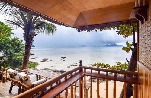 A place with the view of bacuit bay and amazing sunset. Its has patio a chilling area outside the bungalows and a front beach property. Walking distance at the popular beach Las Cabanas. And each rooms has native material build